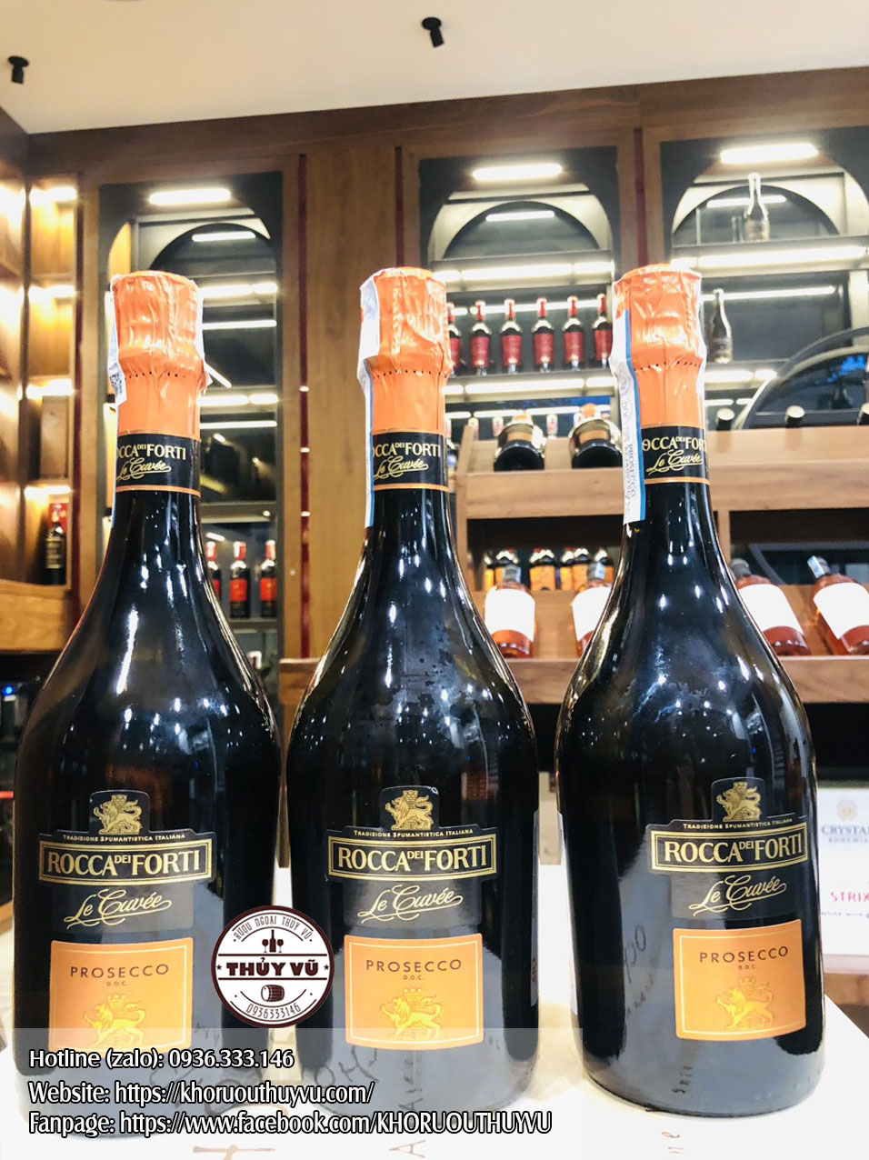 OCCA DEI FORTI Le Cuvee Prosecco. Độ cồn 11.5% được làm từ giống nho Glera, Rocca Dei Forti Cuvée Prosecco đậm sắc vàng lấp lánh, hương thơm tinh tế, quyến rũ của cam quýt, quả táo xanh và lê.