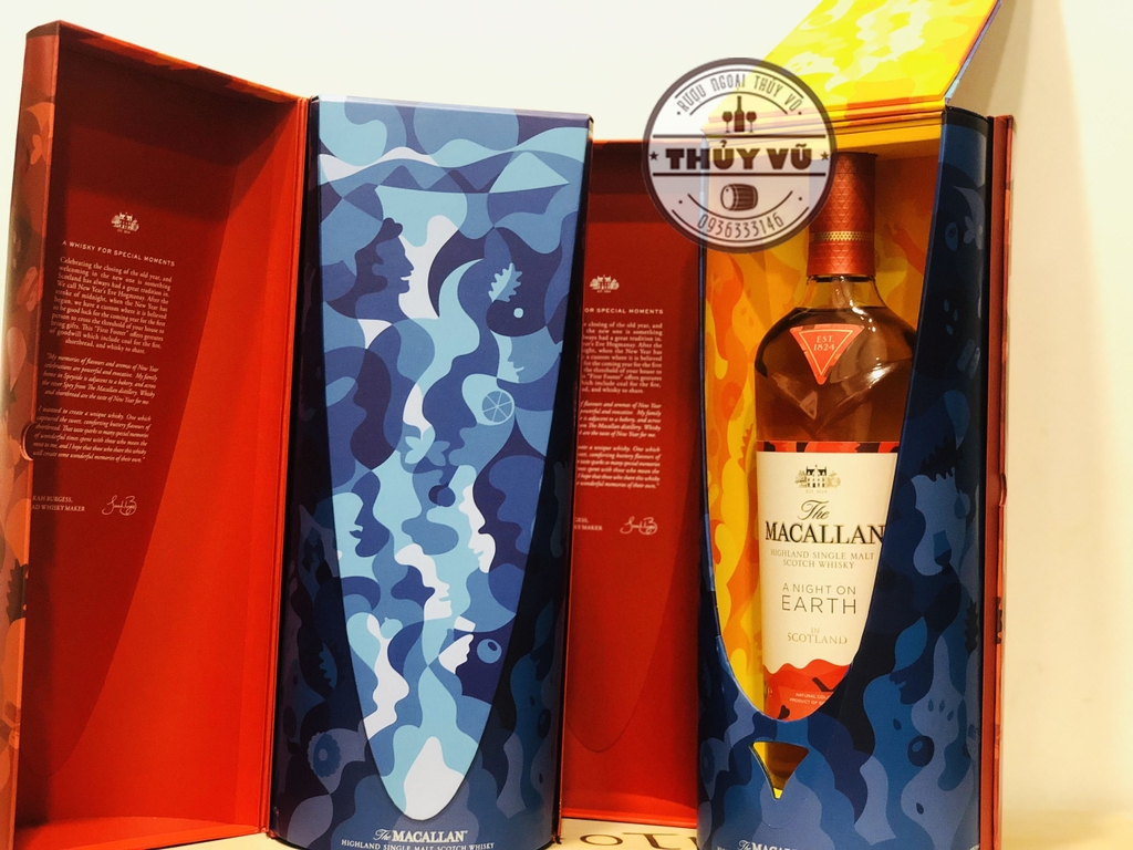 Macallan A Night On Earth In Scotland được tạo ra từ các thùng sherry từ gỗ sồi Mỹ và Châu Âu đặc biệt của Macallan, cùng thùng rượu Ex-Bourbon, tất cả để mang đến đặc điểm giống như bánh mì ngắn ngọt ngào đậm đà của nó. Một lại whisky đề cập đến món ngon truyền thống của Scotland – thứ bạn sẽ tìm thấy ở bất cứ đâu trong lễ hội Hogmanay – sẽ được nhấn mạnh thêm bởi hương cam khô và gia vị của lễ hội.