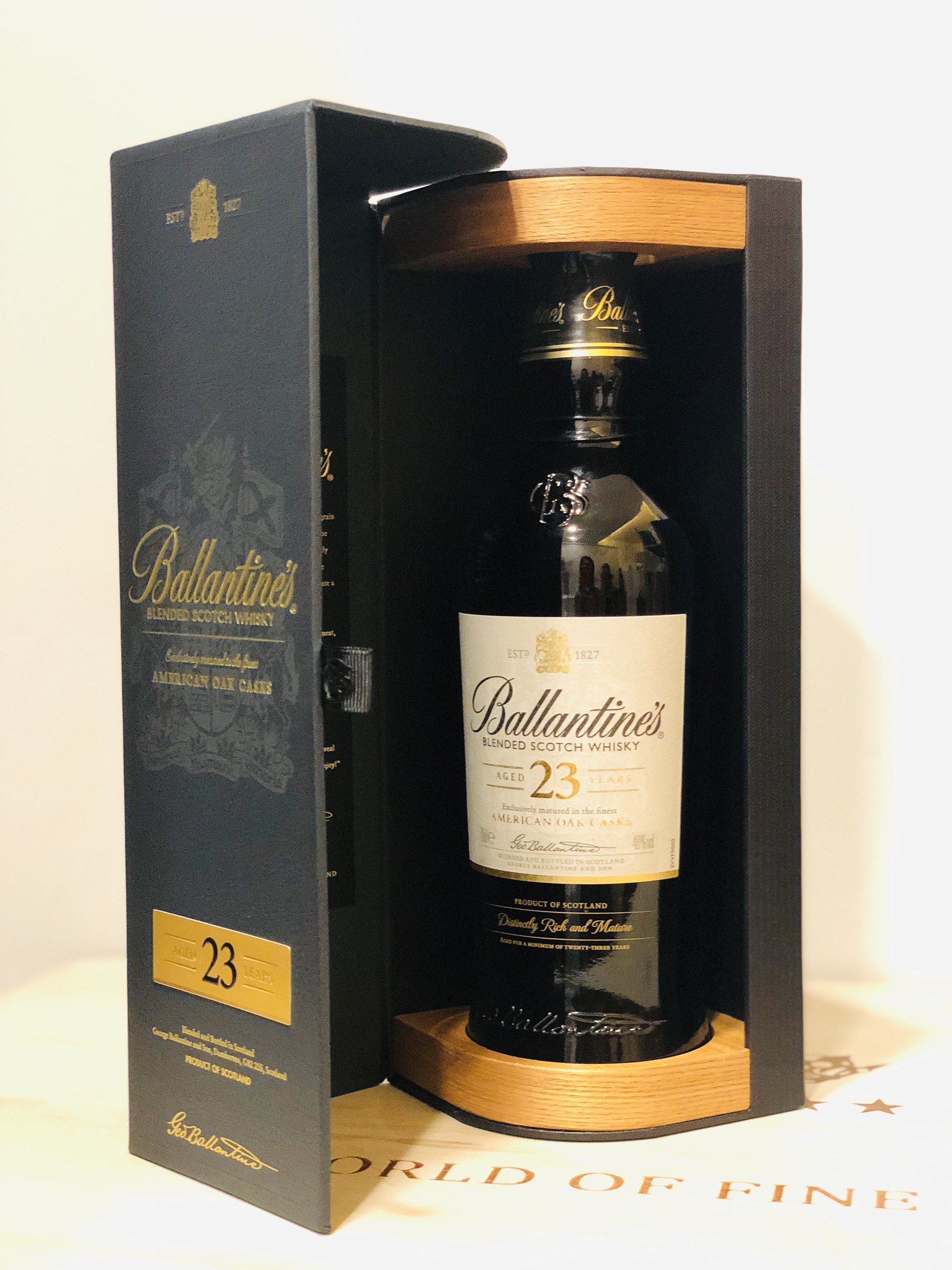 Rượu Ballantine's 23 năm là kết quả của một quá trình pha trộn phức hợp (blended) từ các loại single malt và grain whisky được lựa chọn kỹ lưỡng được ủ trong ít nhất là 23 năm hoặc lâu hơn nữa. Mùi hương đặc trưng của mạnh nha vùng Miltonduff và Glenburgie. Ballantine's 23 cho một hương vị cân bằng và thanh lịch.