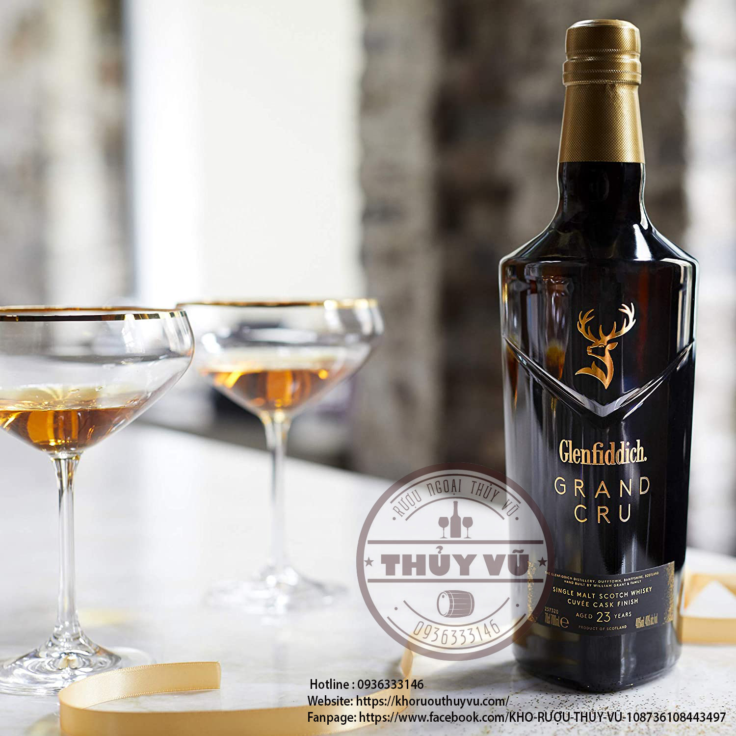 Rượu Glenfiddich 23 năm Grand Cru là một sản phẩm sáng tạo lần đầu tiên xuất hiện nhờ sự kết hợp khéo léo các thùng ủ rượu sherry (ex-sherry casks) và các thùng gỗ sồi Mỹ (American oak casks), sau đó hoàn tất quá trình trưởng thành trong các thùng ủ khi rượu Glenfiddich 23 năm Grand Cru này được trải qua 4 tháng kết thúc trong các thùng rượu đã từng được sử dụng để ủ rượu Champagne (1st-fill & 2nd-fill French oak casks).