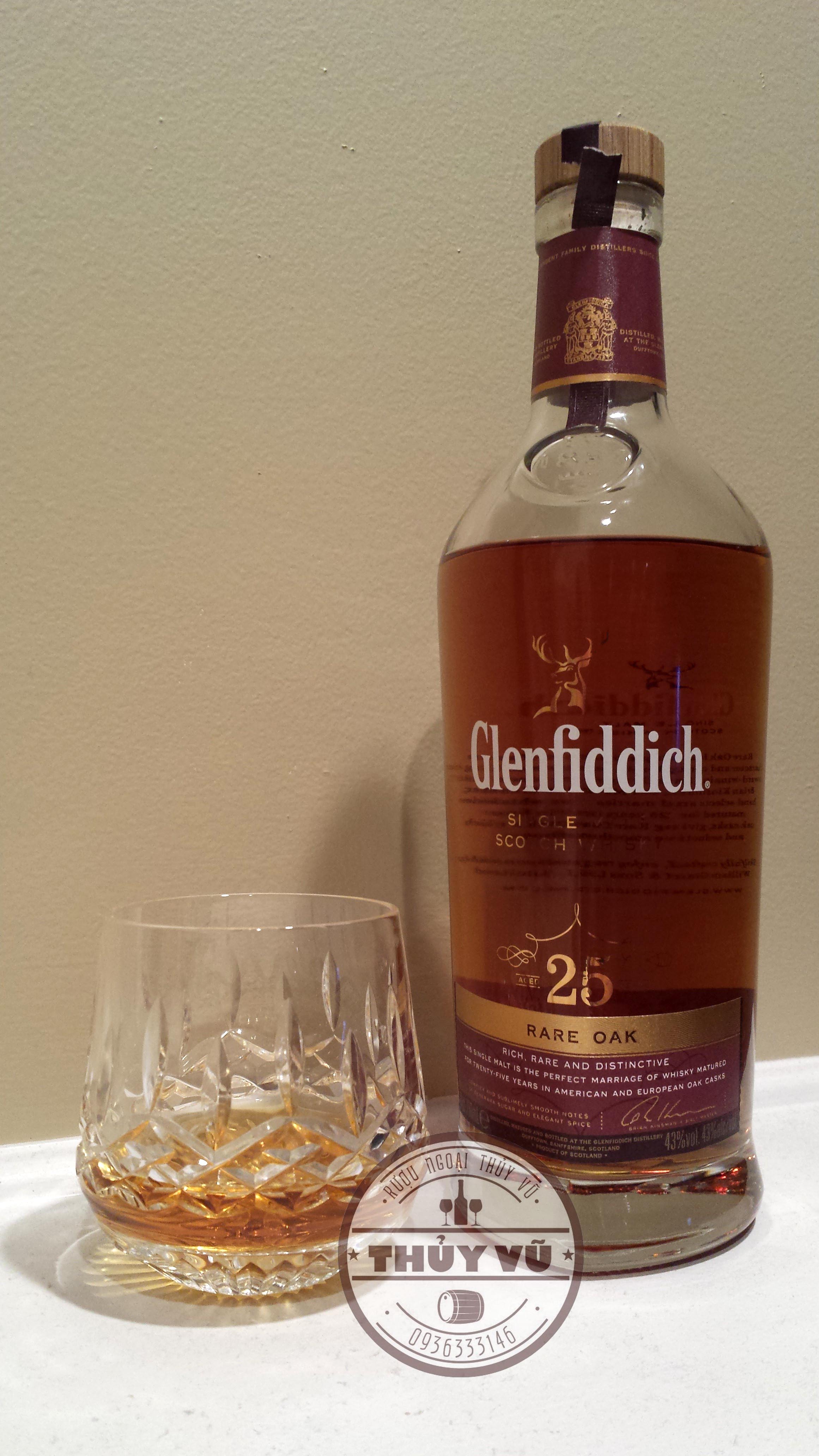 Glenfiddich 25 năm được đóng chai ở 43% abv với dung tích 700ml. Nó ban đầu được phát hành cho thị trường Bán lẻ Du lịch. Sản phẩm có số lượng rất hạn chế, không phải lúc nào cũng hiện hữu trong các shop rượu ở Hà Nội.