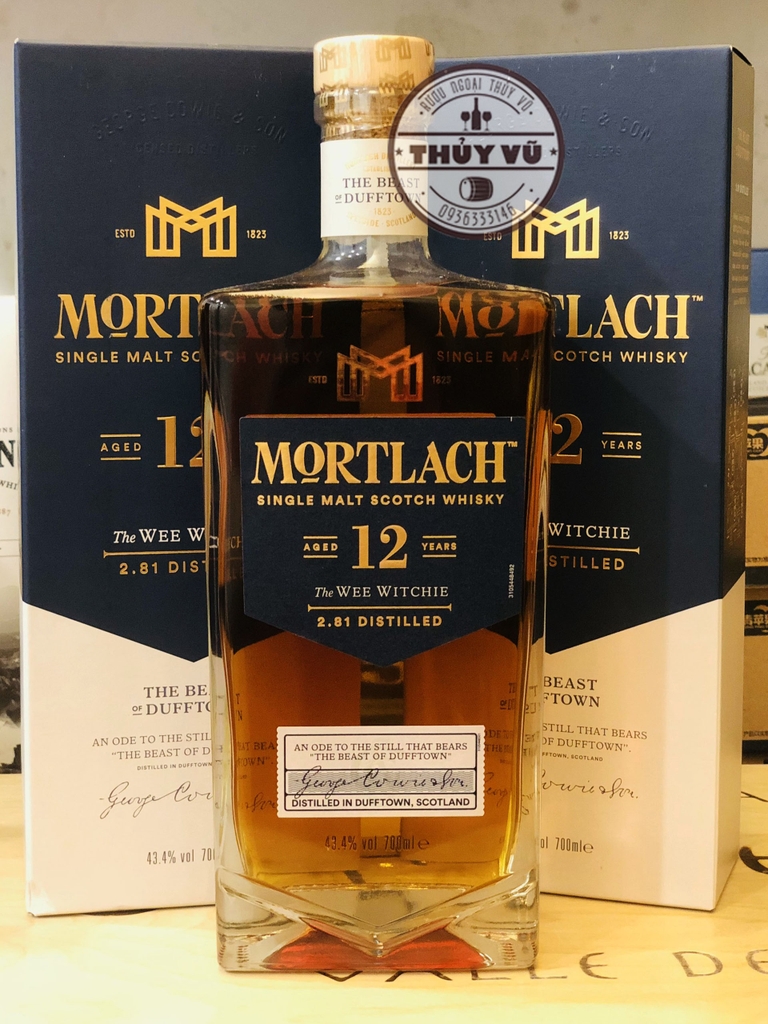 Mortlach 12 năm được phối trộn từ 2 loại thùng ủ ex-bourbon và ex-sherry, được ủ ít nhất 12 năm từ quá trình chưng cất 2.81 lần. Đây là tỷ lệ chưng cất đặc thù của nhà Mortlach.