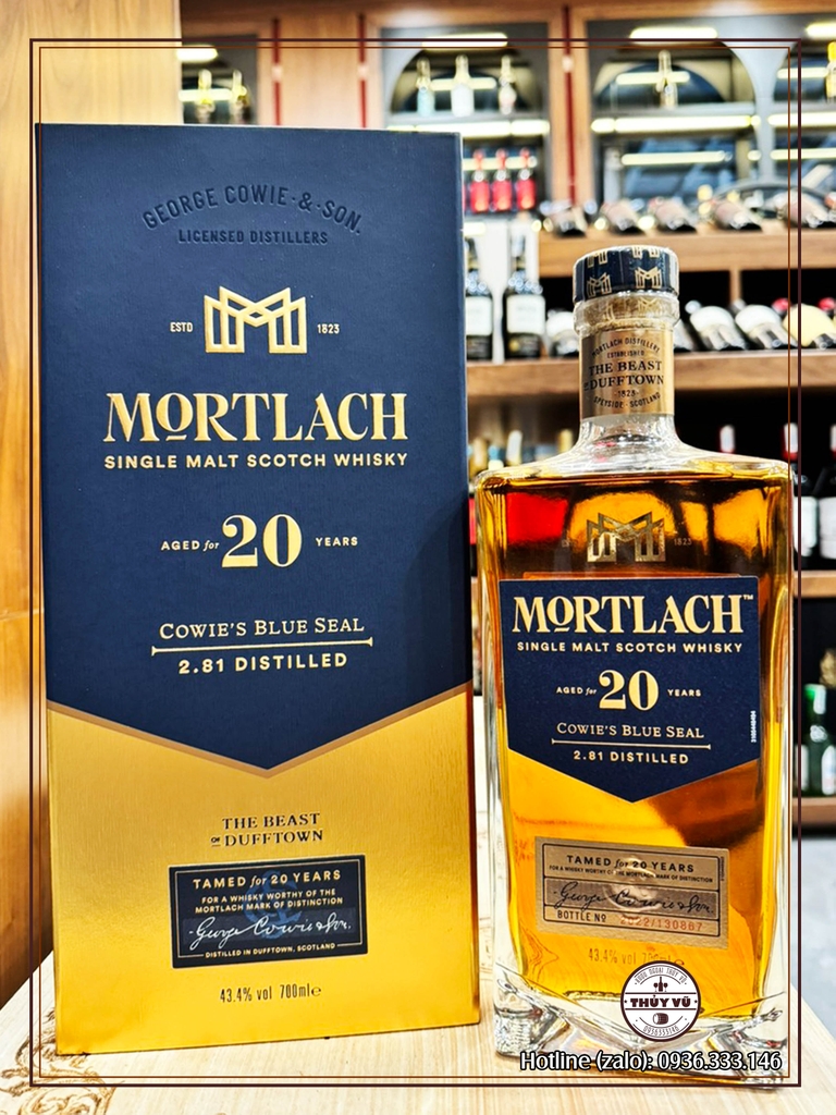 Mortlach 20 Cowie’s Blue Seal là chai rượu Single Malt Whisky đến từ vùng Speyside của Scotland . Rượu Mortlach 20 Năm được chưng cất ở Mortlach 1823 Distillery có lịch sử lâu đời được thành lập vào năm 1823 . Và được biết đến với quy trình chưng cất đặc biệt gọi là “2.81” trong việc sản xuất rượu whisky.
