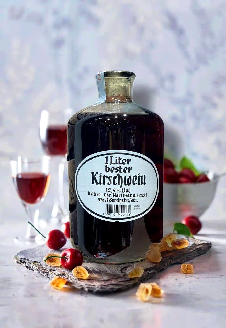 Kirschwein 1 Liter – biểu tượng rượu vang anh đào truyền thống từ Kelterei Christian Hartmann GmbH, Sondheim, vùng Franken, Đức. Với công thức gia truyền từ những trái anh đào chín mọng nhất, chai rượu này mang đến hương vị ngọt ngào, đậm đà, đỏ rực rỡ – lý tưởng cho aperitif, tráng miệng hoặc làm ấm mùa đông. Sản lượng giới hạn, nhập khẩu trực tiếp từ Đức.
