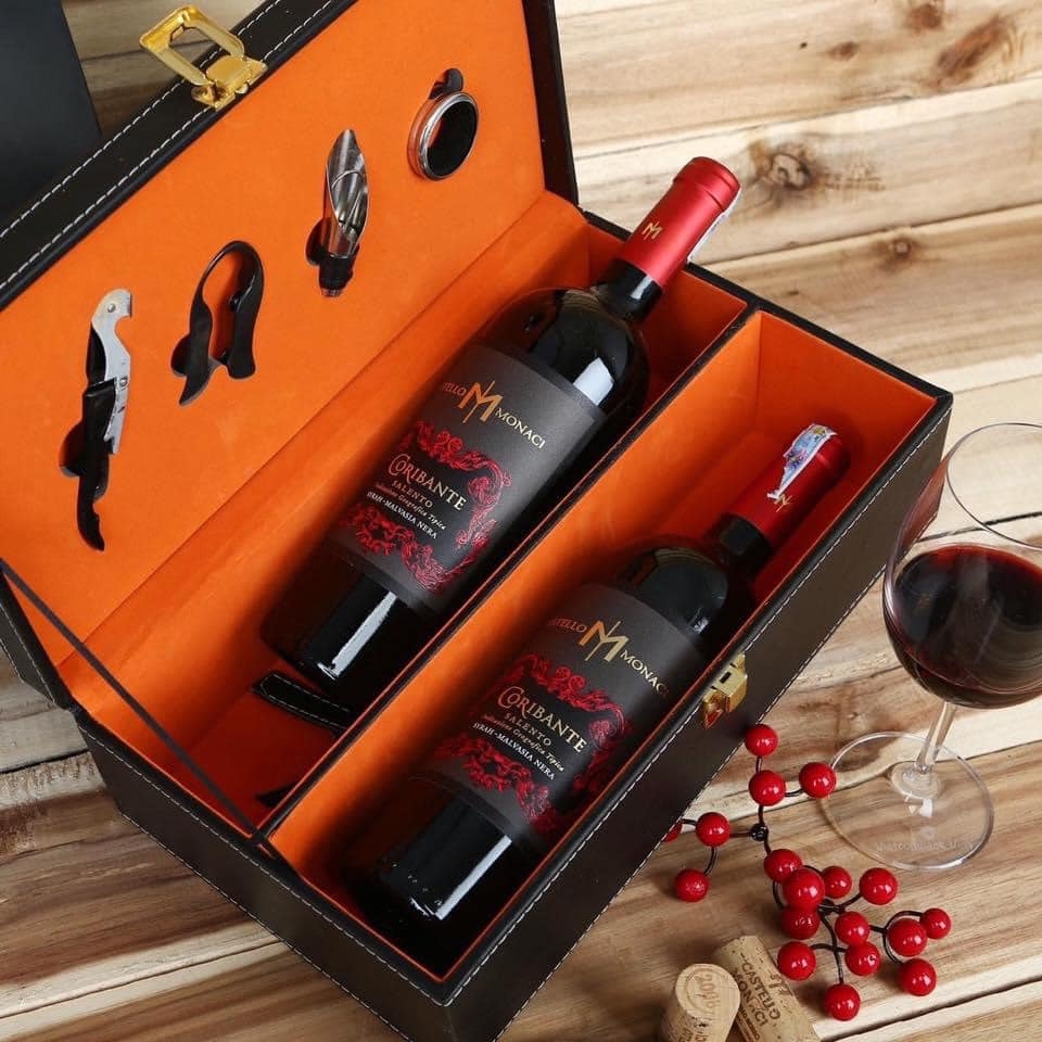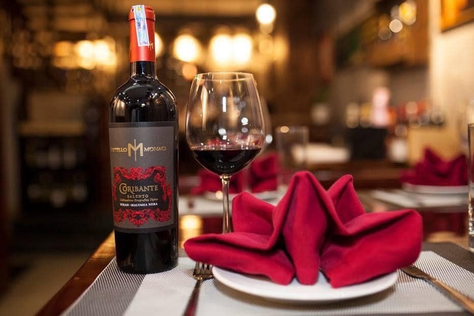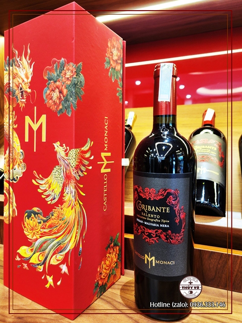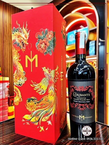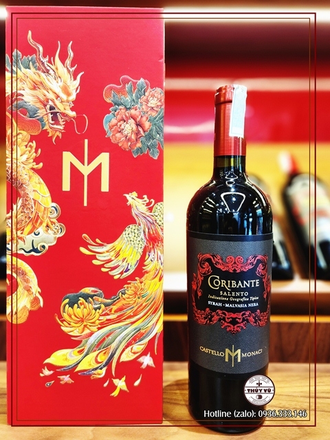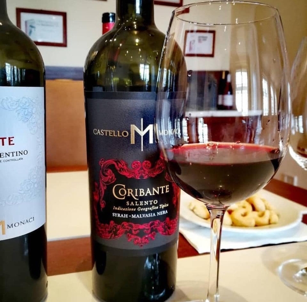 Rượu vang đỏ Coribante Syrah Malvaisia Nera Salento IGT, được phối trộn từ hai giống nho đỏ 60% Syrah và 40% Malvasia Nera, vùng Puglia, Ý. Những quả nho được thu hoạch thủ công vào sáng sớm cho sản xuất, sau khi lên men, rượu được ủ trong thùng sồi 12 tháng.