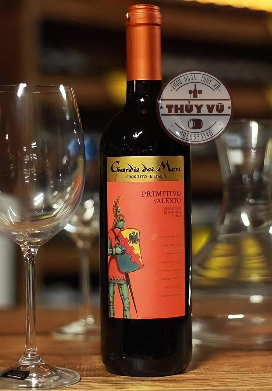 Rượu vang Guardia Dei Mori Primitivo là một trong những dòng rượu vang Ý đang bán chạy nhát hiện này của nhà sản xuất Angelo Rocca&Figli. Rượu là sự kết tinh của hương hoa trái cây với quá trình lên men đầy công phu của giống nho Primitivo vùng Salento. Với màu đỏ ruby pha ánh tím, hương thơm phức hợp của trái cây quý khách sẽ dễ dàng thấy được hàm lượng axit vừa phải, câu trúc mềm mại, hậu vị kéo dài.