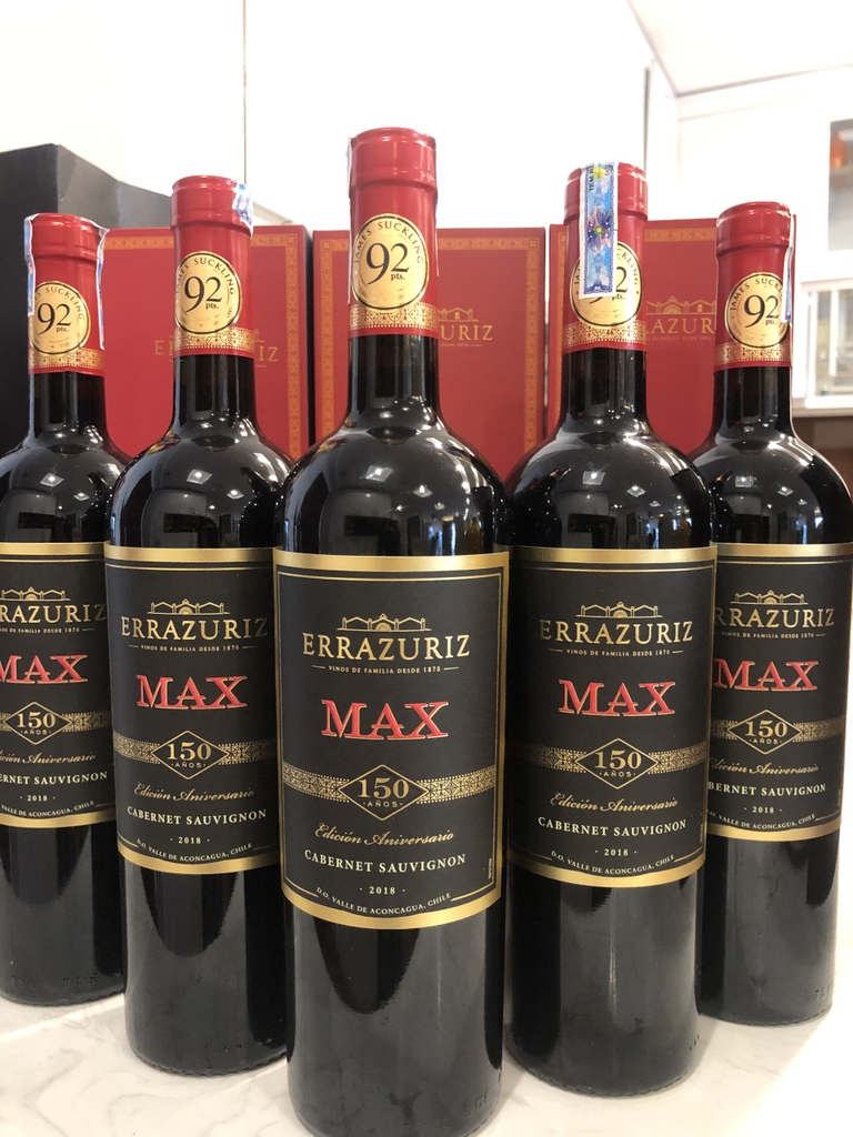 Rượu vang đỏ Errazuriz Max Cabernet Sauvignon 150, là phiên bản phát hành cho kỷ niệm 150 năm nhà vang này. Errazuriz Max Cabernet Sauvignon 150th lấy theo tên người sáng lập Don Maximiano Errázuriz, nho thu hoạch nho thủ công và rượu được ủ 12 tháng trong thùng gỗ sồi Pháp.