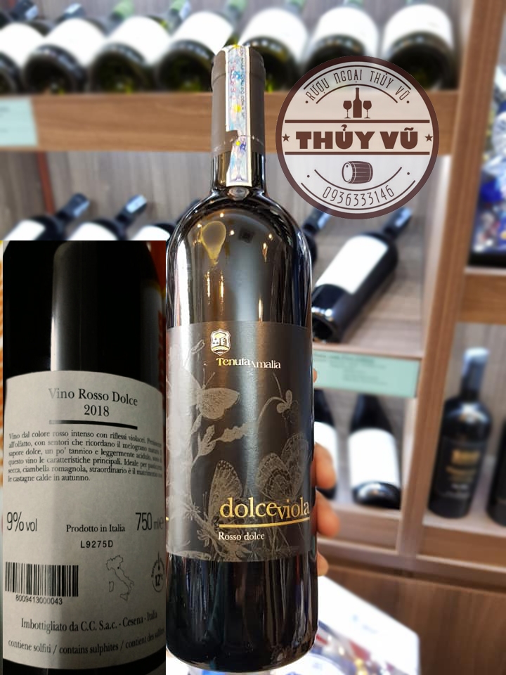 Dolce Viola là chai vang ngọt với màu đỏ tươi, phản chiếu ánh tím đẹp mắt. Hương thơm rất mãnh liệt với sự gợi nhớ của quả lựu chín. Khỏa lấp vòm miệng một vị ngọt êm dễ chịu, một chút tannin nhẹ nhàng làm rượu trở nên cân bằng, mềm mượt.